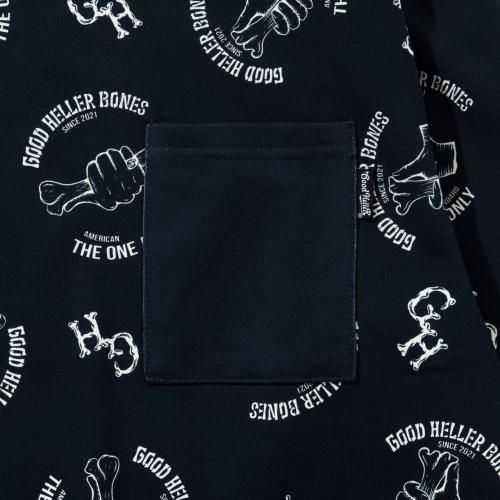 【9.27 (Sat) 12:00 Release】GOOD HELLER グッドヘラー「BONE LOGO ALLOVER PATTERN SWEAT PANTS」NAVY