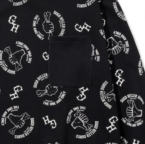 【9.27 (Sat) 12:00 Release】GOOD HELLER グッドヘラー「BONE LOGO ALLOVER PATTERN CREW SWEAT」BLACK
