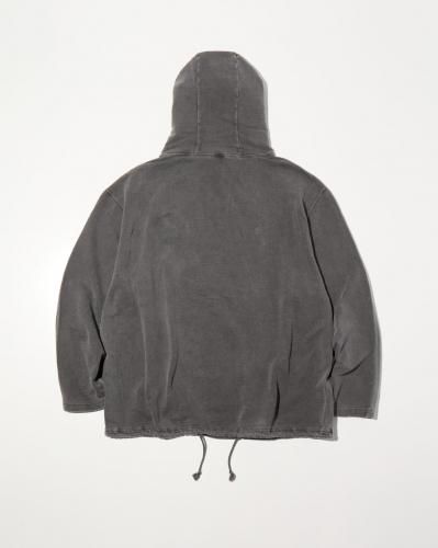 ピグメント加工を施したコットンインレイのプルオーバーフーディー。