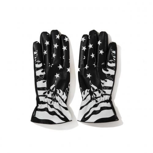 【10.18 (Sat) 12:00 Release】GOOD HELLER グッドヘラー「AMERICAN FLAG FIRE PATTERN LEATHER GLOBE」BLKWHT